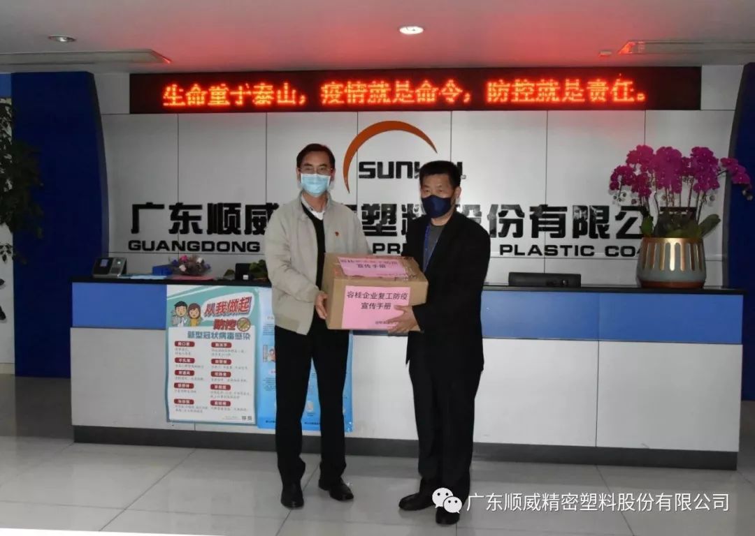 容桂總工會為順威工會提供了伍仟元的慰問金,并發放了500份《容桂企業復工防疫宣傳手冊》。